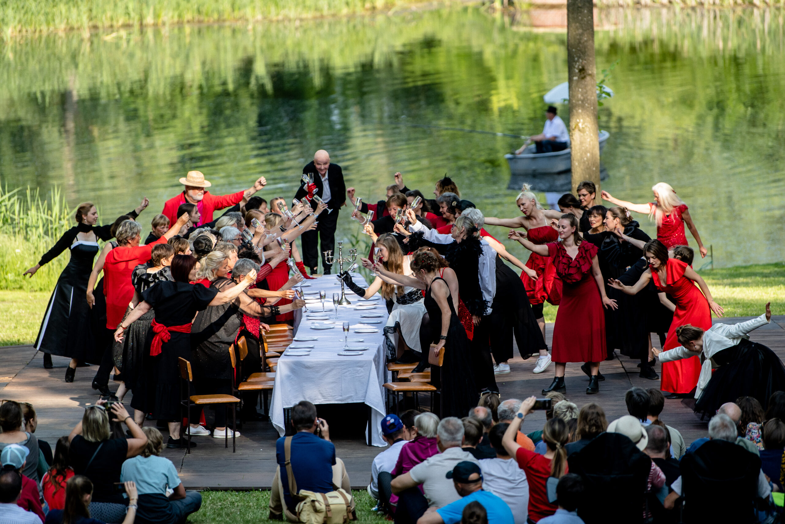 Im Jahr 2024 konnten wir „Das Fest“ wieder aufnehmen, diesmal mit einer Aufführung auf der polnischen Seite der Grenze im Theater GOKSIR,